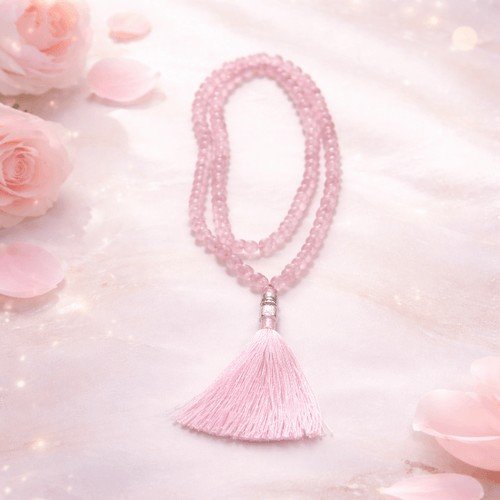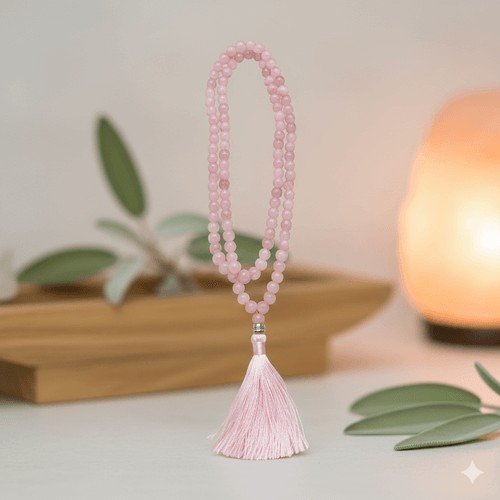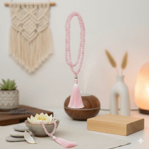• O Japamala de Quartzo Rosa é um instrumento energético e meditativo tradicional, confeccionado com 108 contas de pedra natural, associado ao cultivo do amor, da paz interior e do equilíbrio emocional.