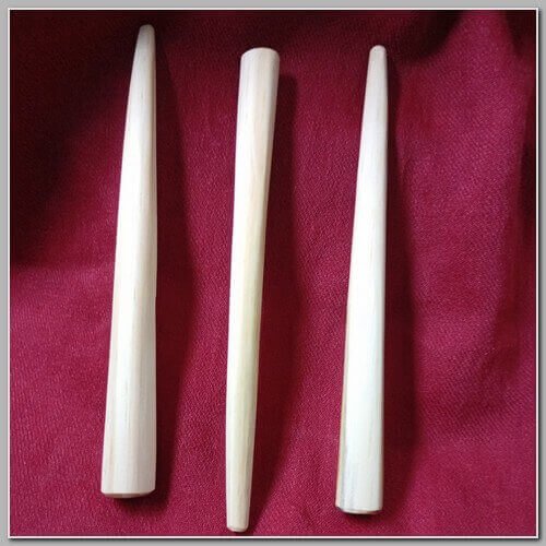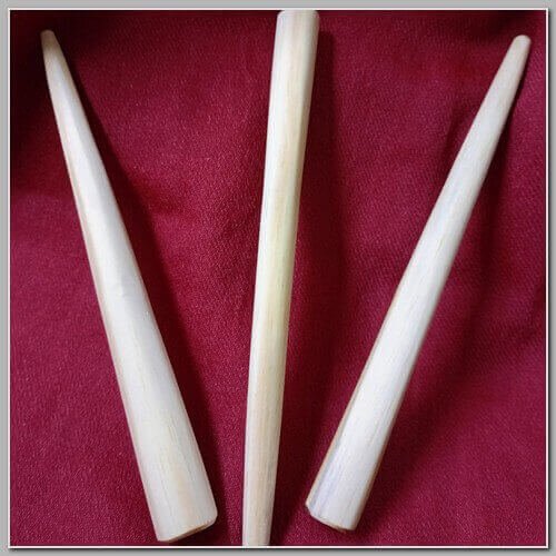 - Para produzi-los, temos moldes em madeira, tamanhos de 15 e 25 cm de comprimento por 2,5 e 3,5 de diâmetro
