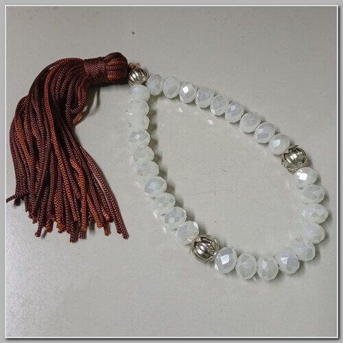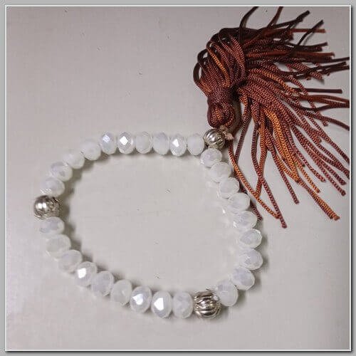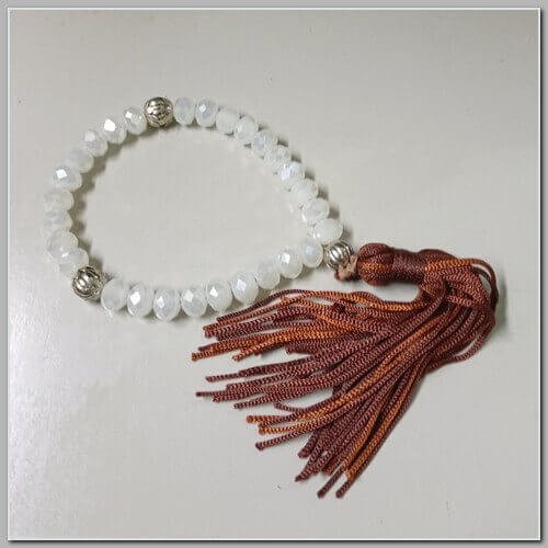 Pulseira Japamala 27 Contas de Resina Clara e Franja Marrom