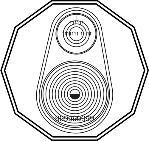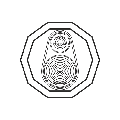 Descrição: Composto por um Decágono Duplo externo que envolve dois conjuntos circulares: a base com 11 Círculos Concêntricos (Número 9) e o topo com 5 Círculos (Número 1) em cascata. Essa geometria numérica e circular induz o cérebro ao relaxamento profundo através da emissão de ondas de forma.